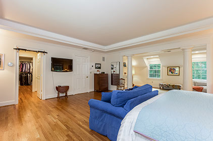 The master suite has been completely updated, featuring a massive walk-in closet and a fireplace. Hardwood floors are found throughout, including in the library or office space which holds custom cherry built-ins. The 3 garage is large and expansive and offers lots of storage options. Finally, the backyard is as peaceful as any home in the town, perfectly accompanied by a bluestone patio area.
